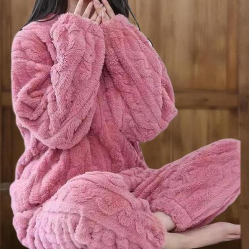 [신상오픈런]여자 겨울 후리스 뽀글이 꽈배기 극세사 잠옷 세트 (39079808)