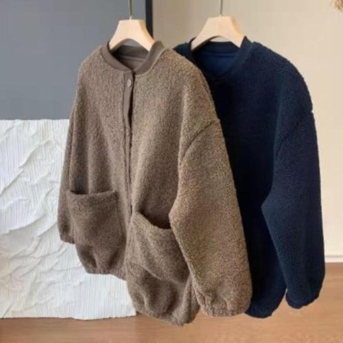 ANYOU 겨울 뽀글이자켓 부드러운 떡볶이 코트 여성 보들보들 아우터 두꺼운 램스울 코트