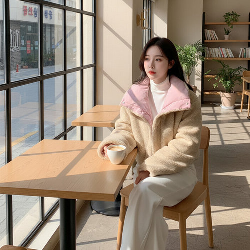 여성 빅카라 뽀글이 양털 떡볶이 가디건 SVC0152 겨울