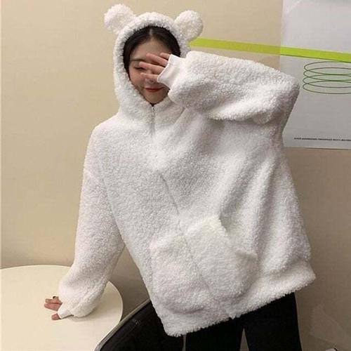 [셀럽하우스]곰돌이 USQF0748 후리스 후드집업 유니크 귀여운 뽀글이 자켓