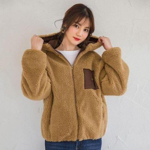 [셀럽하우스]여자 BKCL6369 일체형 후드집업 뽀글이 아우터 여유핏 양털코트