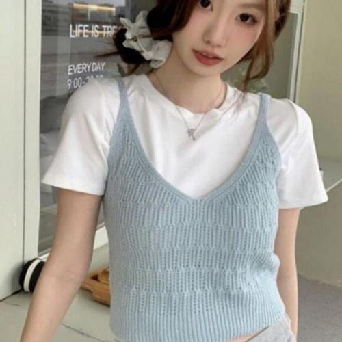 [에이치플러스몰]여름 여성 추천 그물 망사 꾸안꾸 크롭 니트 레이어드