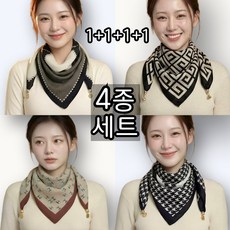 [4종세트] 허블리 여성 부드러운 자석버클 사각 쁘띠 스카프 머플러