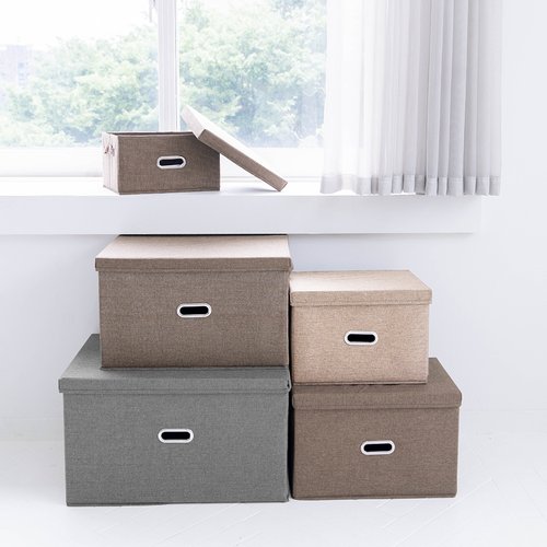 TEMU 1개 또는 3개 대형 접이식 패브릭 수납함 (플립 뚜껑 및 손잡이 포함), 내구성 있는 부직포 접이식 정리함 - 옷장, 침실, 기숙사, 캠핑, 여행용 - 공간 절약 수납 컨테이너, 옷장 정리 및 수납, 기숙사 필수품, 클래식 디자인, 텍스처 마감, 침대 밑 수납