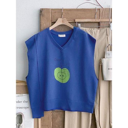 [샵앤]국산 여성 V넥 사과 나염 레이어드 언발 면 조끼 FJ-WVS-5003-블루