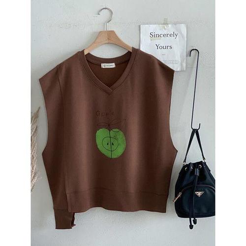 [샵앤]국산 여성 V넥 사과 나염 레이어드 언발 면 조끼 FJ-WVS-5003-브라운