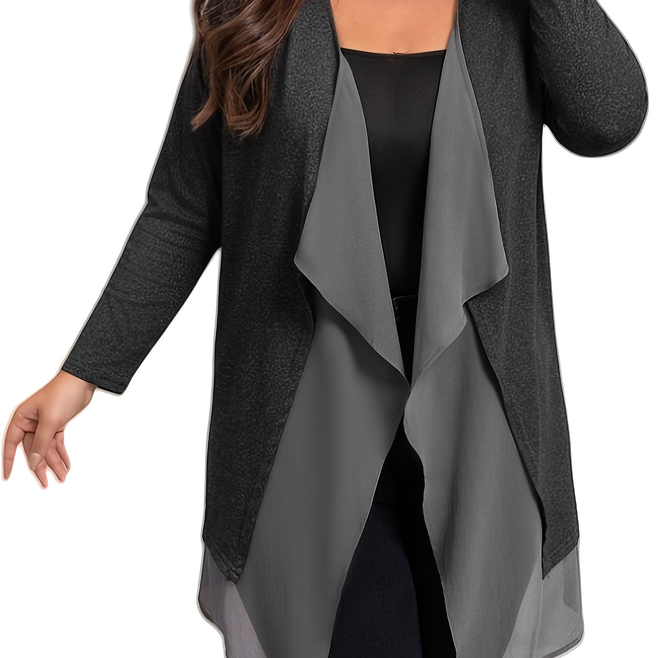 TEMU 플러스 사이즈, 패치워크 쉬폰 메쉬 비대칭 밑단 기모노