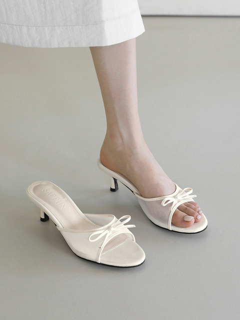 [사뿐] 르네린 매쉬 리본 샌들 뮬 (5cm)