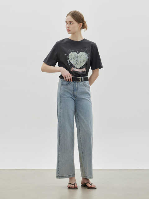 남녀공용 사이드 라인 포인트 와이드 청바지 WFLS2II