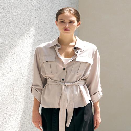 |CSH3A17|봄출근룩 사파리 허리조절 여유분량 여성셔츠