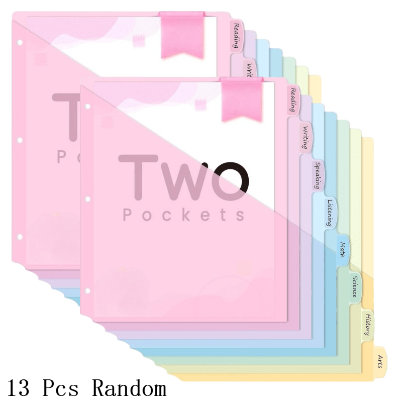 TEMU 7/13개 묶음 이중 포켓 바인더 (분리대 포함) | 3구 펀치 바인더 호환, 레터 사이즈 플라스틱 보호 페이지, 학교, 대학 및 사무용품에 적합, 부드러운 색상