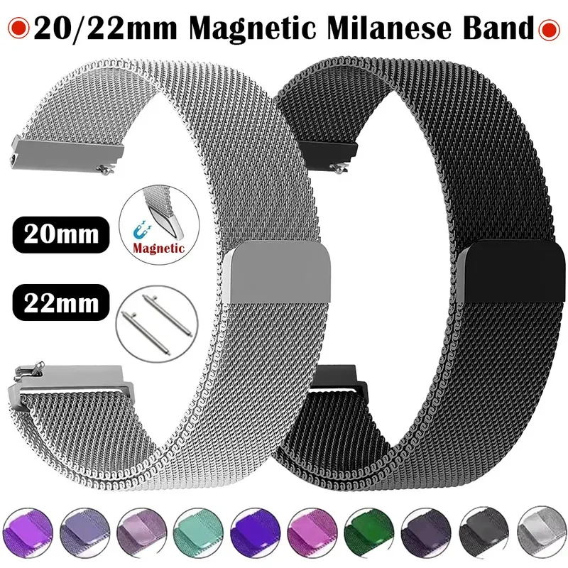 화웨이 워치 GT3 2용 22mm 20mm 밀라니즈 루프 스트랩, 삼성 갤럭시 워치 7 6 5용 자석 스테인리스 스틸 시계 밴드