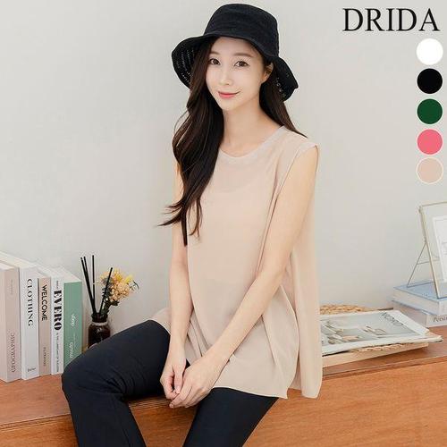 [드리다]여성 여름 플레어 민소매 빅사이즈 쉬폰 나시 블라우스 40-50대 미시 중년 하객 출근 상견례 엄..