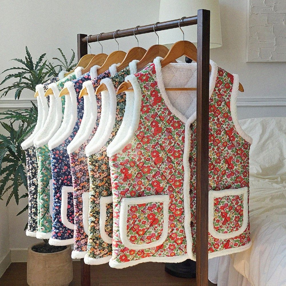 여성 꽃무늬 누빔 김장조끼 할머니 겨울 촌캉스 엄마 양털 시골 조끼