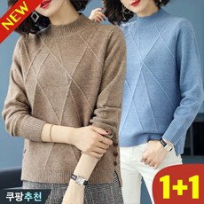 (완전 추천) 1+1 날씬해보이는 여성 숏 반목 도톰한 스웨터 니트 가을 겨울 편한 트임 버튼 디테일 라인 디자인 언발티 상의 보온 이너 단아한 고급 솔리드 풀오버 니트티