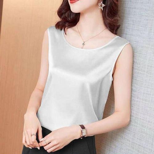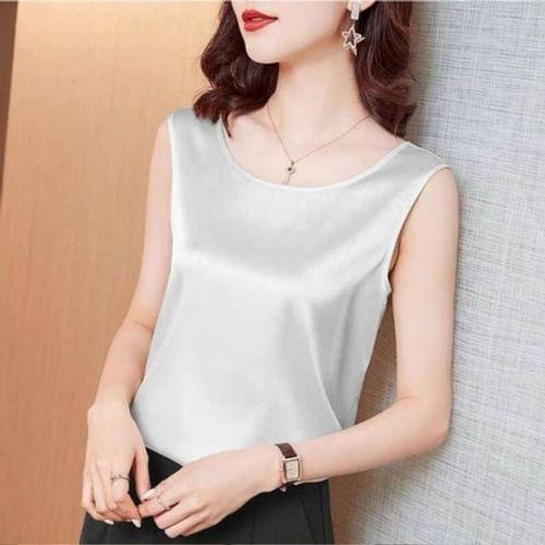 [에이치플러스몰]여름 여성 나시 새틴 블라우스 실키 민소매 고급