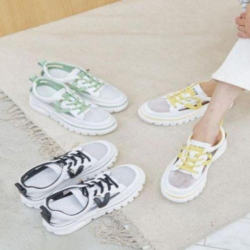 4컬러 배색 스니커즈 블로퍼 여성 뮬샌들