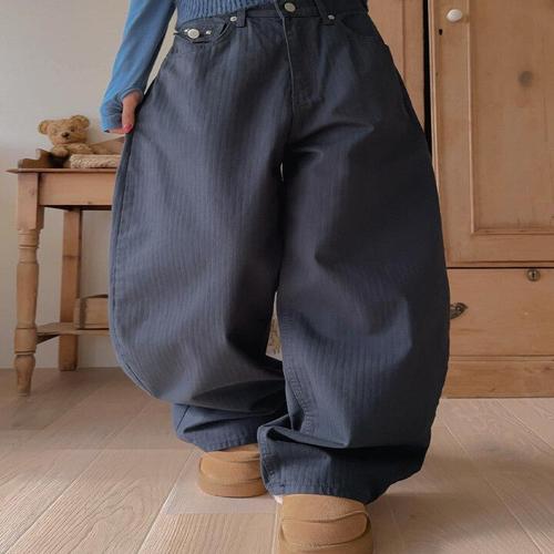 [엘루이즈][엘루이즈] [국내제작/핏보장] 샐리븐 스터드 테일러드 핀라인 와이드 벌룬 코튼 팬츠(3color)