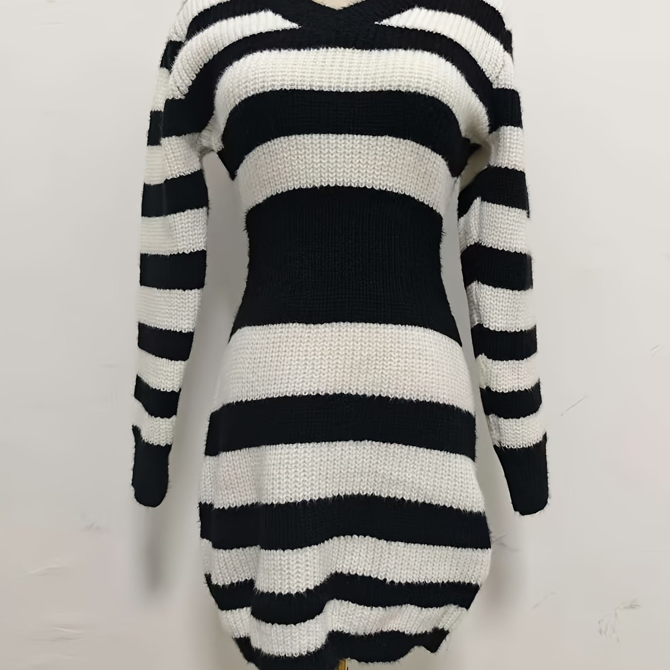 TEMU 여성용 슬림핏 블랙 앤 화이트 긴팔 드레스 - 가을용 바디콘 스웨터 스커트, 고급스러운 레이디 분위기, 우아하고 클래식한 스웨터 드레스, 이브닝 아웃핏, 오피스 웨어, 고품질 소재, 내구성 있는 제작, 패션 애호가를 위한 드레스