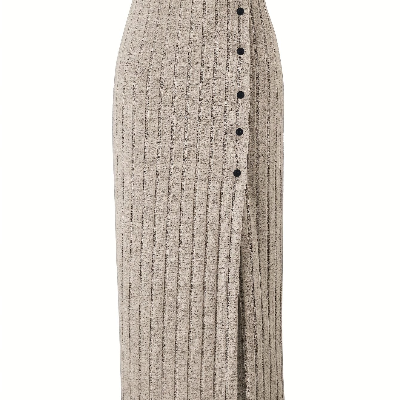 TEMU 여름/가을 신상 여성 캐주얼 하이웨이스트 골지 버튼 분할 스커트