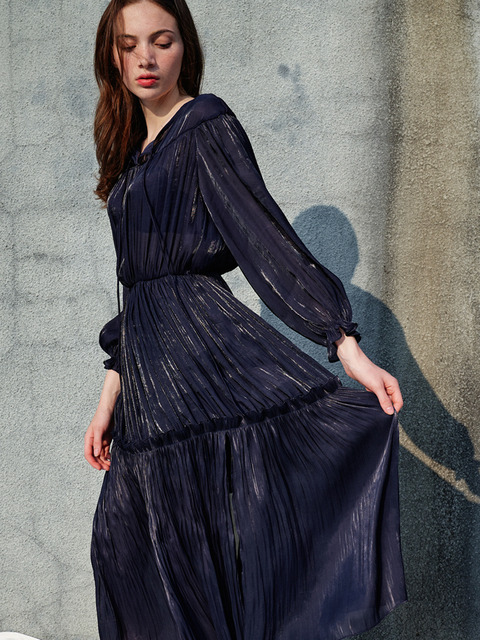 [쏘리투머치러브] 엘라시아 샤틴 롱 드레스_네이비