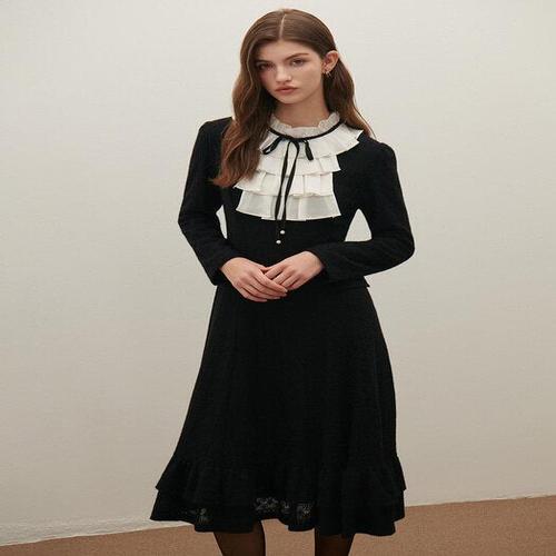 [샤틴]프릴배색 니트 롱원피스/S254B651