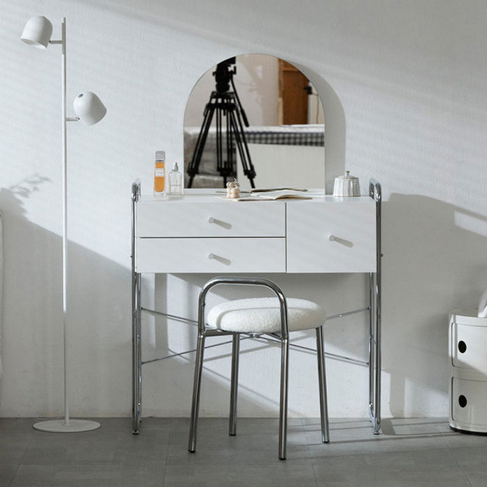 인터데코 감각적인 화이트 스틸 화장품 서랍 수납 화장대 80cm (거울+의자포함) TP1110