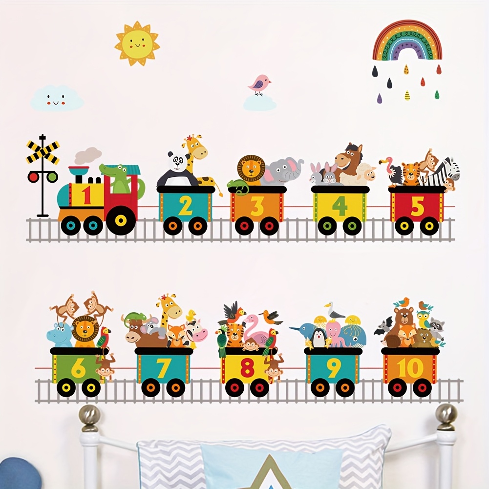TEMU 카툰 동물, 기차 선로, 어린이 거실, 소파, 침실, 배경 벽용 장식 스티커