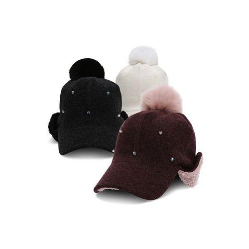 선덜랜드 여성 방한 큐빅 방울 골프모자 - 16142CP74, 블랙/Free, 1개