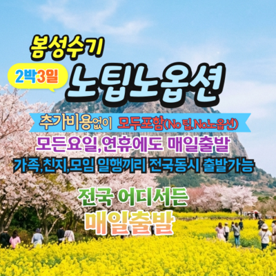 [제주] ★전국출발★2박3일 꽉찬일정 노팁노옵션 다시제주!! 봄성수기 추억 쌓기 여행