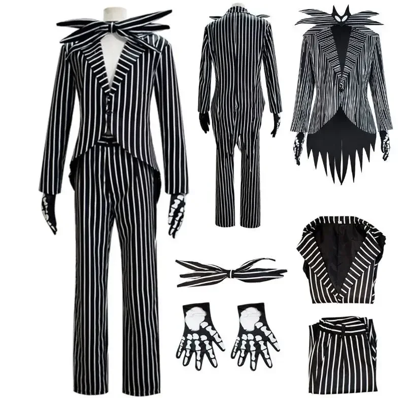잭 코스프레 Skellington 코스프레 의상 성인 남성을위한 환타지아 자켓 바지 복장 남자 할로윈 카니발 파티 변장 양복