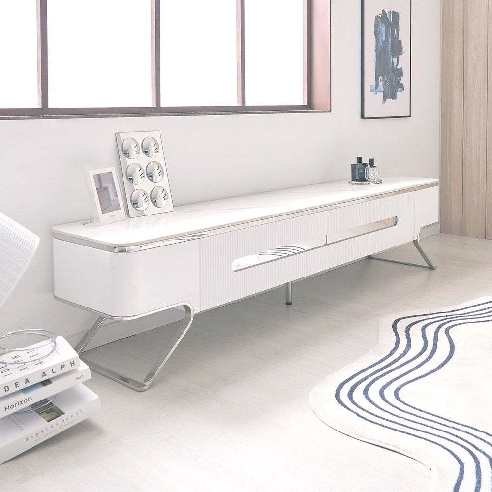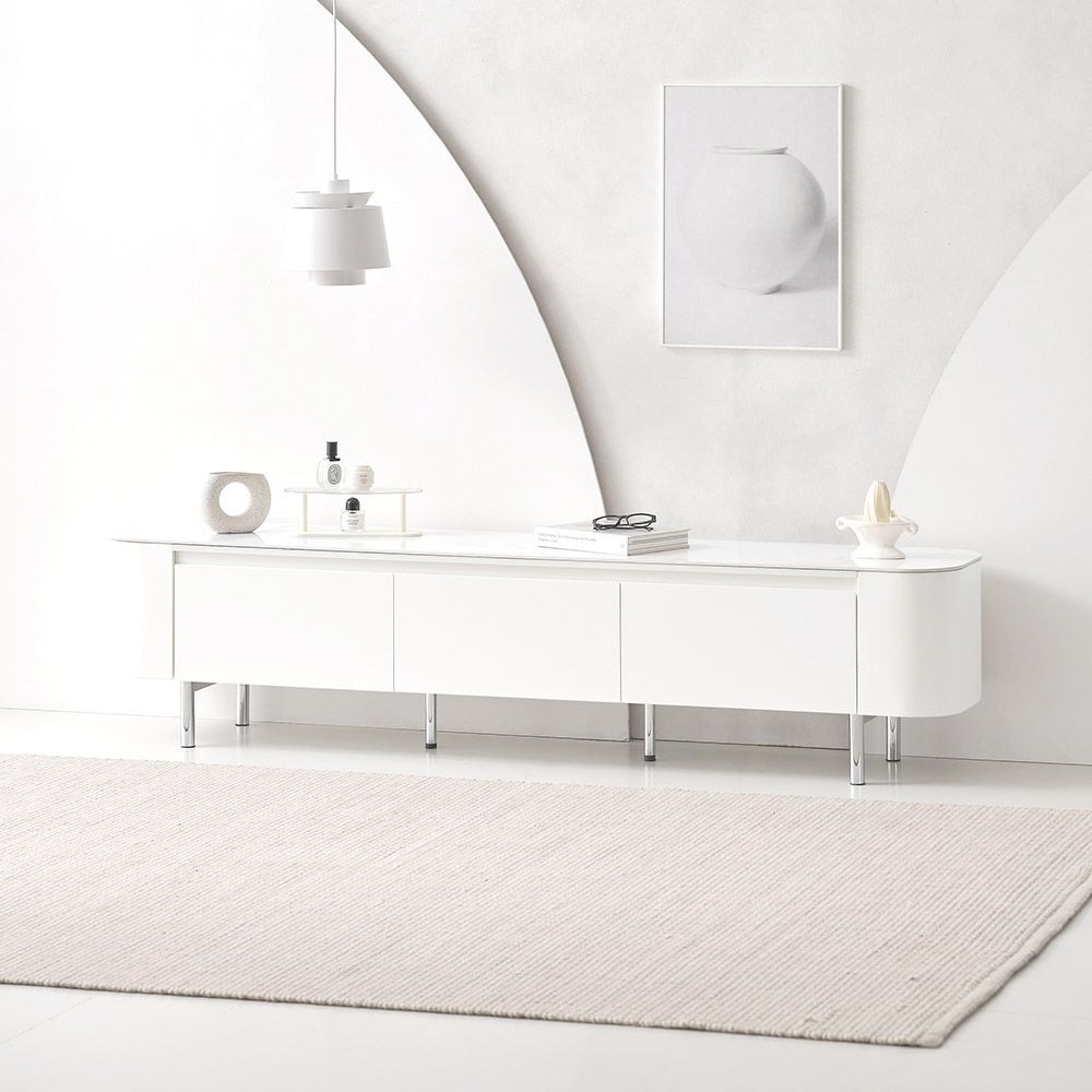 밀크 세라믹 거실장 낮은 85인치 티비다이 TV선반 캄비오 2800