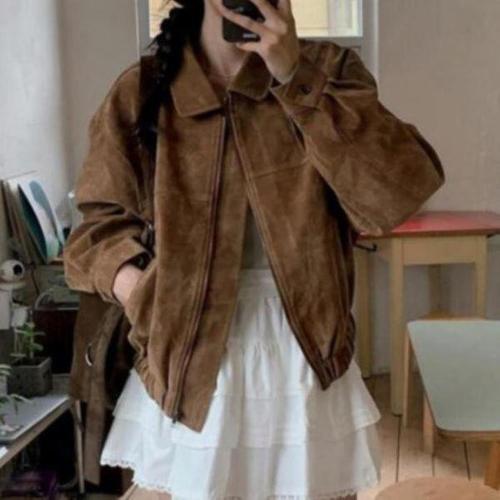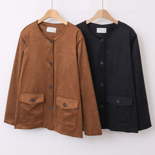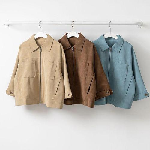 Latium HC06 크롭 루즈핏 스웨이드 세무 라운드 집업 쟈켓형 이브 점퍼 T2533jp14DG
