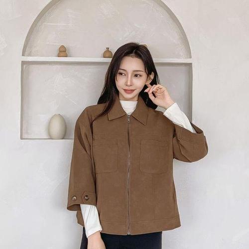 [다잇템]여성 가을용 세무 칼라포켓 집업자켓