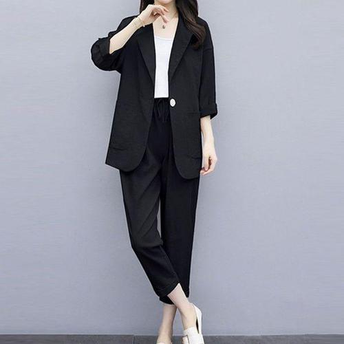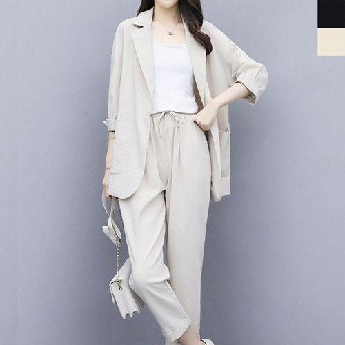 [에이치플러스몰]여자여름정장세트 1P 롤업 자켓 밴딩팬츠 세미정장