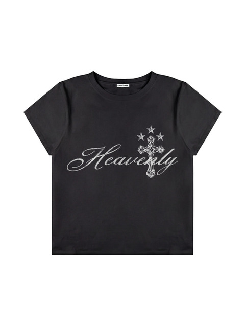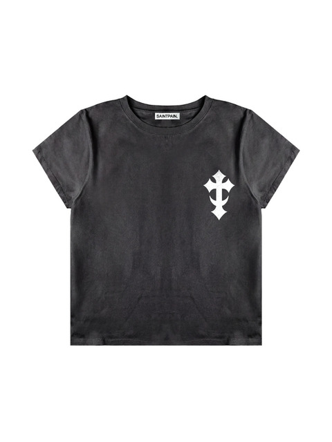 [세인트페인] SP 헤븐리 크로스 크롭 반팔티 블랙