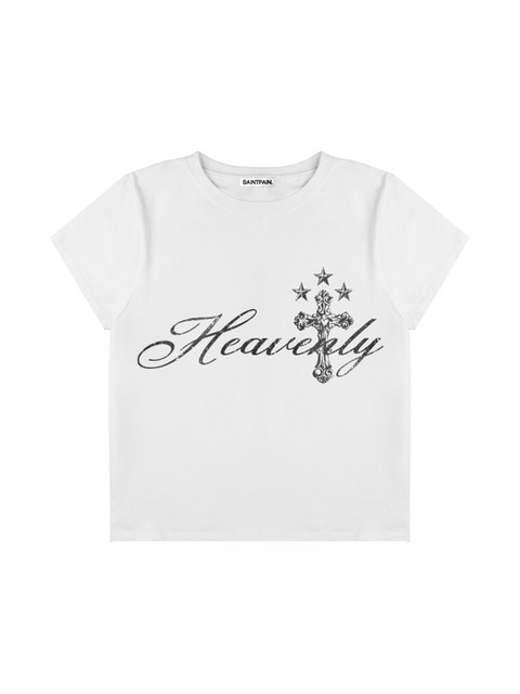 [세인트페인] SP 헤븐리 크로스 크롭 반팔티 화이트