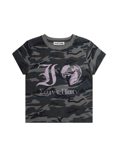 [세인트페인] SP 아이러브 세인트 크롭 반팔티 카모 블랙
