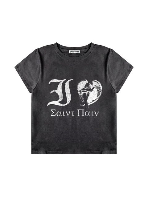 [세인트페인] SP 아이러브 세인트 크롭 반팔티 피그먼트 블랙