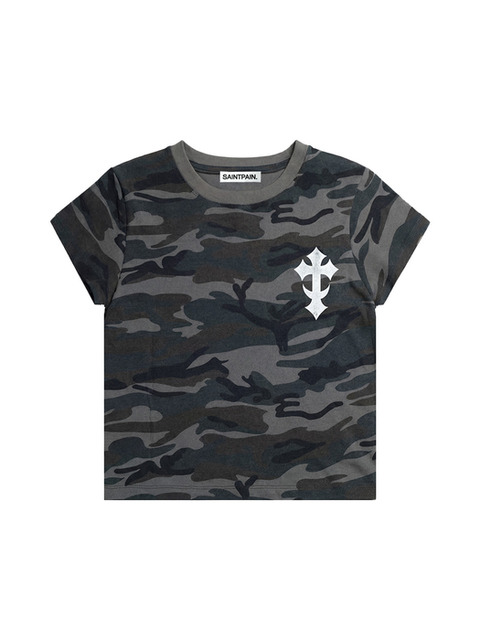 [세인트페인] SP 미니 크로스 크롭 반팔티 카모 블랙