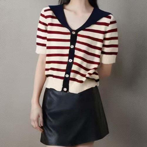 [오너클랜]인기상품 여성 스트라이프 여름 반팔 니트 1P 세일러 카라 외투 [WFJLI3R_251119]