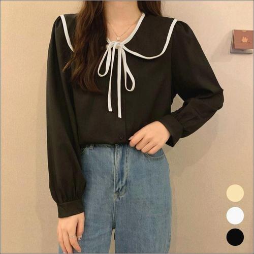 [오너클랜]인기상품 블라우스 리본 배색 여자 오피스룩 세일러카라 긴팔 셔츠 [WFLAHWX_251215]