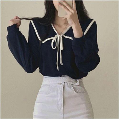 [셀러허브_여성트랜드패션]여자 데일리 데이트룩 러블리 세일러 블라우스