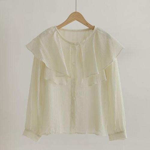 [오너클랜]인기상품 페미닌 여자 블라우스 벌룬 오피스룩 프릴카라 소매 세일러 [WFLAHWN_251215]