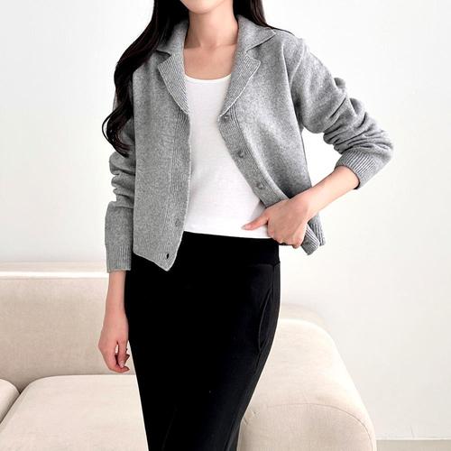 [옷자락] 여자 울혼방 무지 세일러 카라넥 단추 니트 가디건