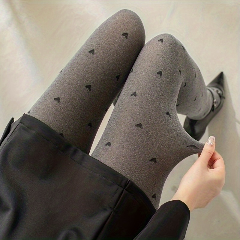 TEMU 1개 여성용 따뜻한 겨울 레깅스 - 하트 & 도트 무늬 (블랙/화이트) - 통기성 메쉬 패널, 신축성 보온 타이츠, 내구성 있는 그레이 언더웨어, 손세탁/드라이클리닝, 캐주얼 & 스타킹용
