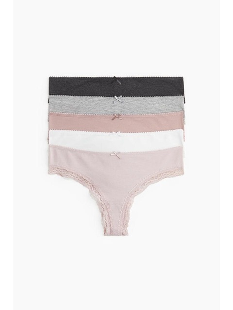[에이치엔엠] Brazilian 팬티 5매 세트 파우더 핑크/다크 그레이 멜란지 0990702040