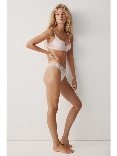 [에이치엔엠] 마이크로파이버 & 레이스 Thong 팬티 2피스 세트 파우더 핑크 1301340006