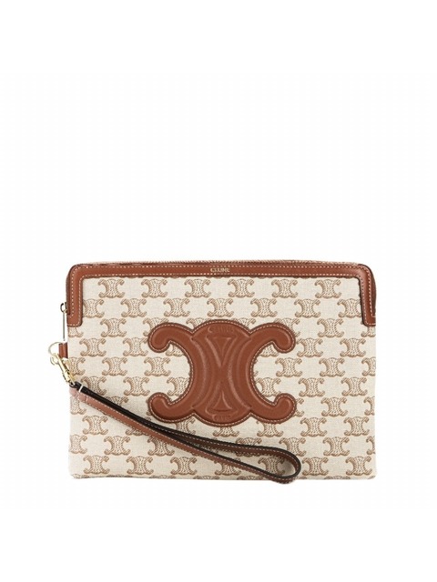 셀린느 클러치 온 스트랩 타부 트리옹프 캔버스 카프스킨 탄 10I592DQ2-04LU