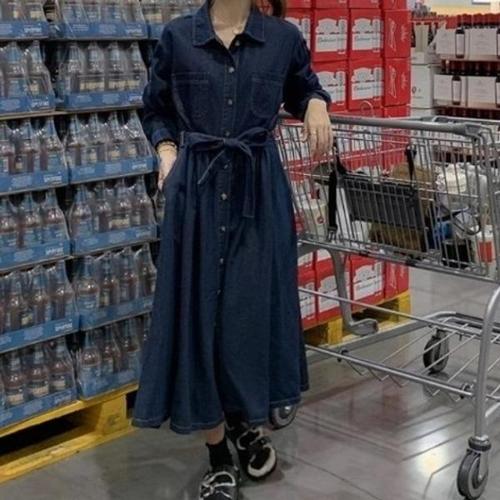 [엄지척]데이트룩 허리 스트랩 포켓 셀비지 데님 A 원피스_19952151_667501
